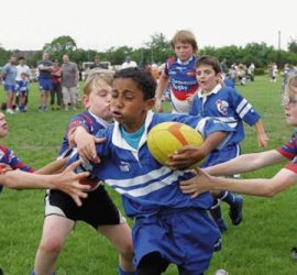 L’occasion pour Sébastien Chabal d’effectuer un superbe plaquage, et pour les supporters de l’AS Chalampé de passer à la télé :